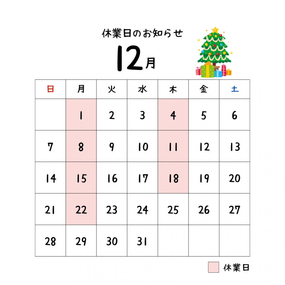 12月休業日および年末年始のお知らせ|練馬区・大泉学園の寿司屋『おもかげ寿司』