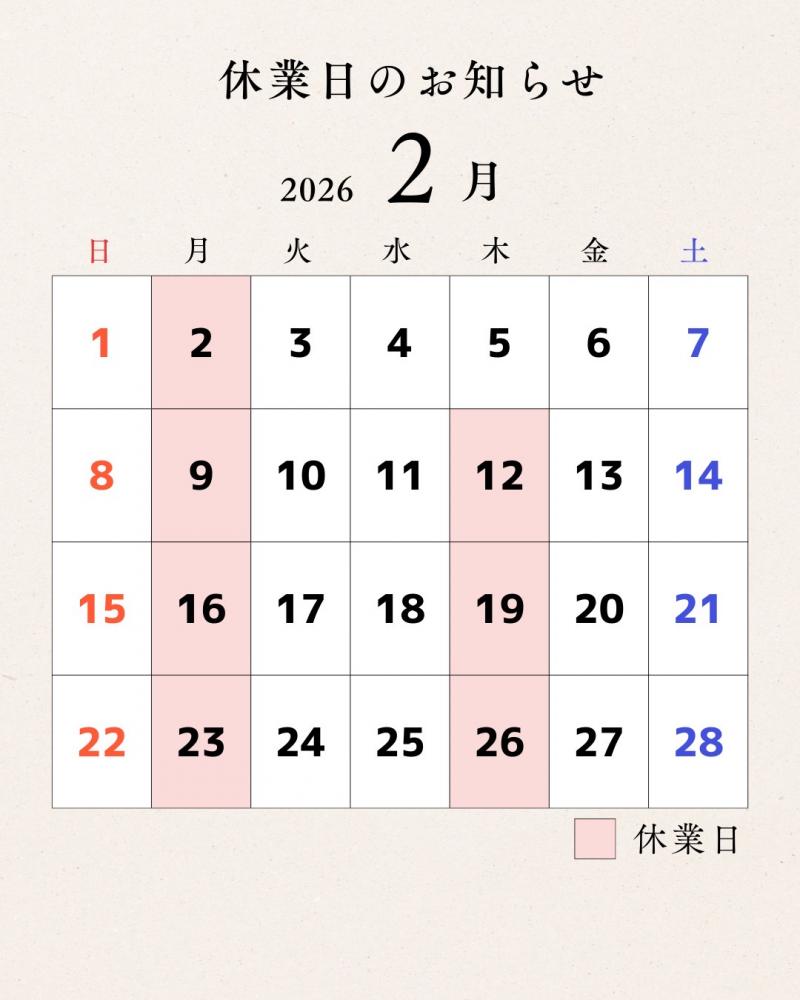 《2月休業日のお知らせ》