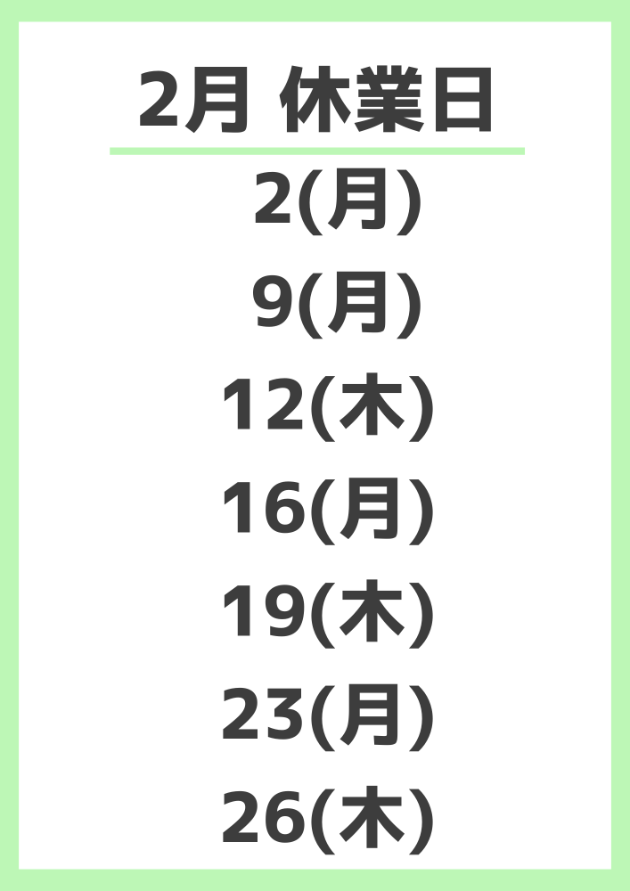 2月休業日のお知らせ