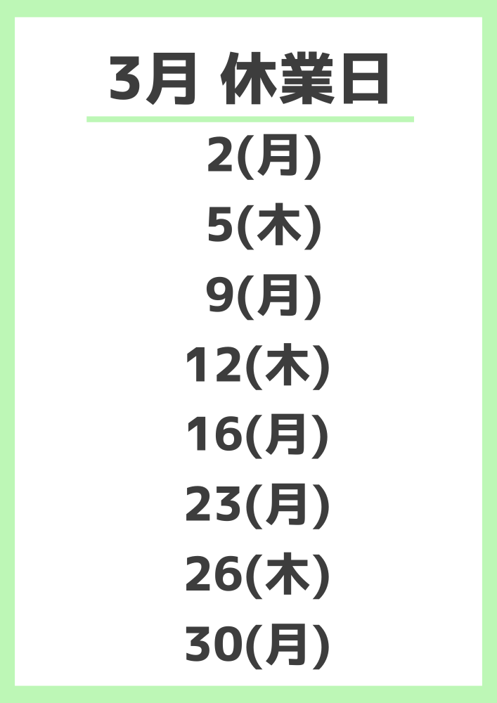 《3月 休業日のお知らせ》