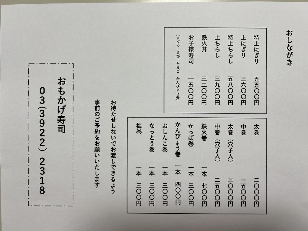 価格改定のお知らせ|練馬区・大泉学園の寿司屋『おもかげ寿司』