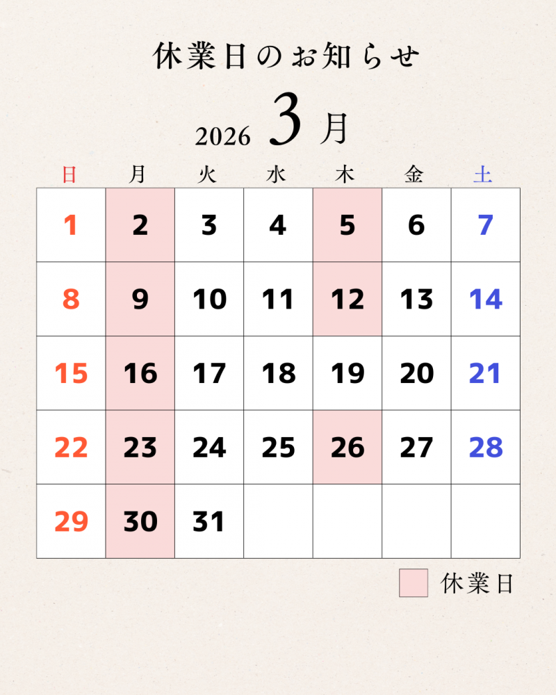 《3月 休業日のお知らせ》
